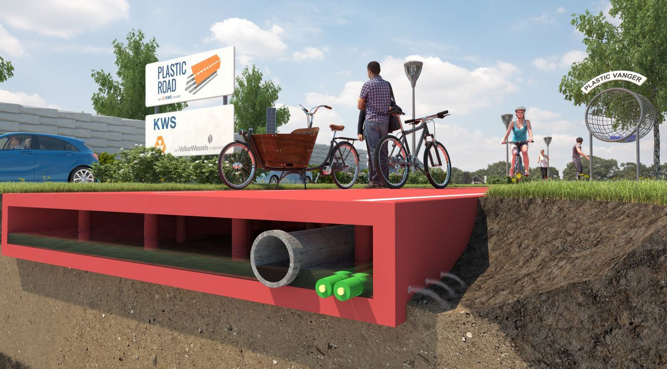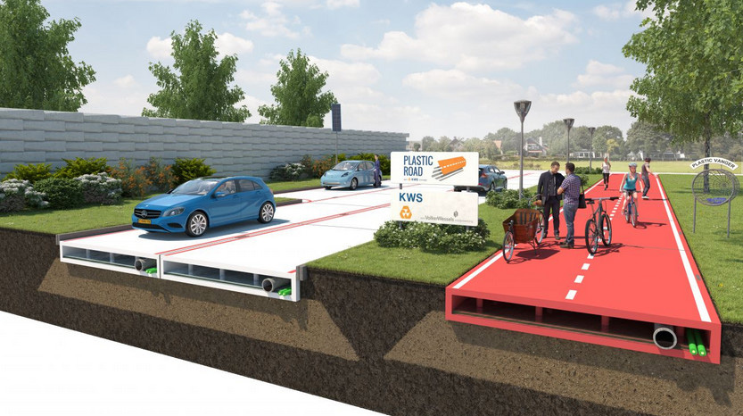 Именно такая технология разрабатывается в настоящее время голландской строительной компанией VolkerWessels. Специалисты компании предлагают строить дороги из переработанного пластика, сырье для которого предлагается извлекать из океанов, где мусор, выбрасываемый человеком, уже образует искусственные острова.